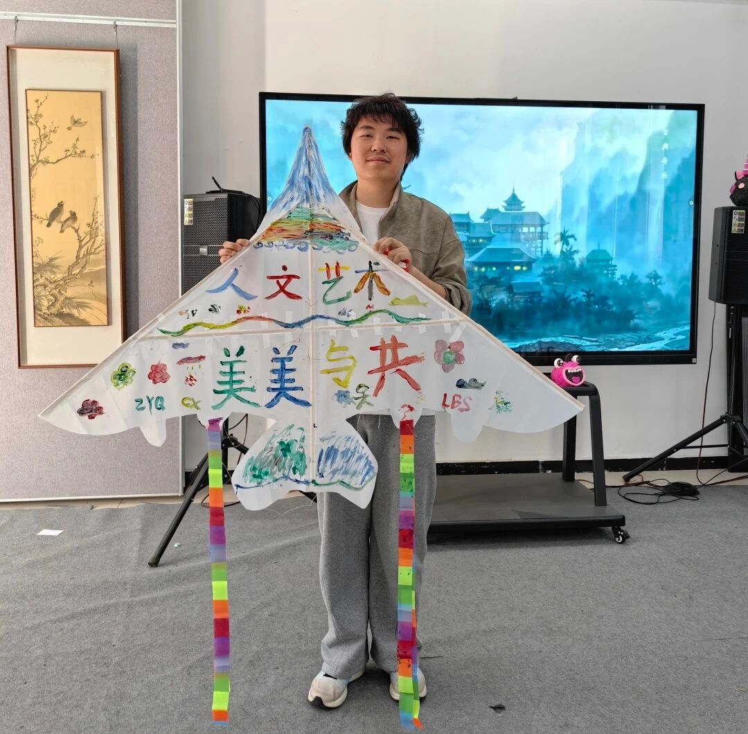 “参与此次风筝制作活动,我收获满满。从了解风筝文化,到亲手勾勒‘人文艺术,美美与共’的字样,每一步都满是趣味。放飞亲手制作的风筝时,看着它在蓝天中翱翔,我既体验了手工创作的乐趣,也感受到了校园文化的温暖。”(2024级汉语言文学专业本科生李百晟)
