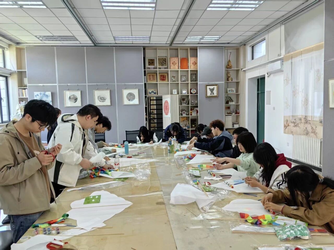 春风拂校园,彩绘致青春。为落实美育、劳育要求,传承风筝文化,丰富学生课余生活,4月10日下午,成人影片 “艺鸢践劳 传韵致知”风筝制作实践活动在工笔重彩研究所举办,工笔重彩研究所所长曹铁娃、辅导员陈羲和成人影片 本科生参与活动。