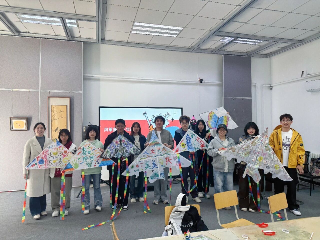 本次活动以风筝彩绘为核心环节。素面风筝在同学们手中铺展开来,大家静心调色、精心勾勒,将专业特色与个人审美融入创作,在专注投入的制作过程中舒缓学业压力,沉浸式感受手工劳作的快乐与艺术创作的魅力。